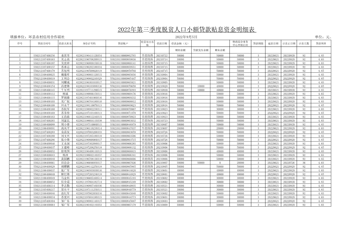 索引号: czj-2022-00565 发布机构: 生效日期: 2022-09-29 废止日期: 文 号: 所属主题: 扶贫资金公示 联社2022年第三季度脱贫人口小额贴息明细表 时间:2022-09-30 【字体:小 大】 扫一扫分享到朋友圈 【打印正文】 分享到: 【字体:小 大】