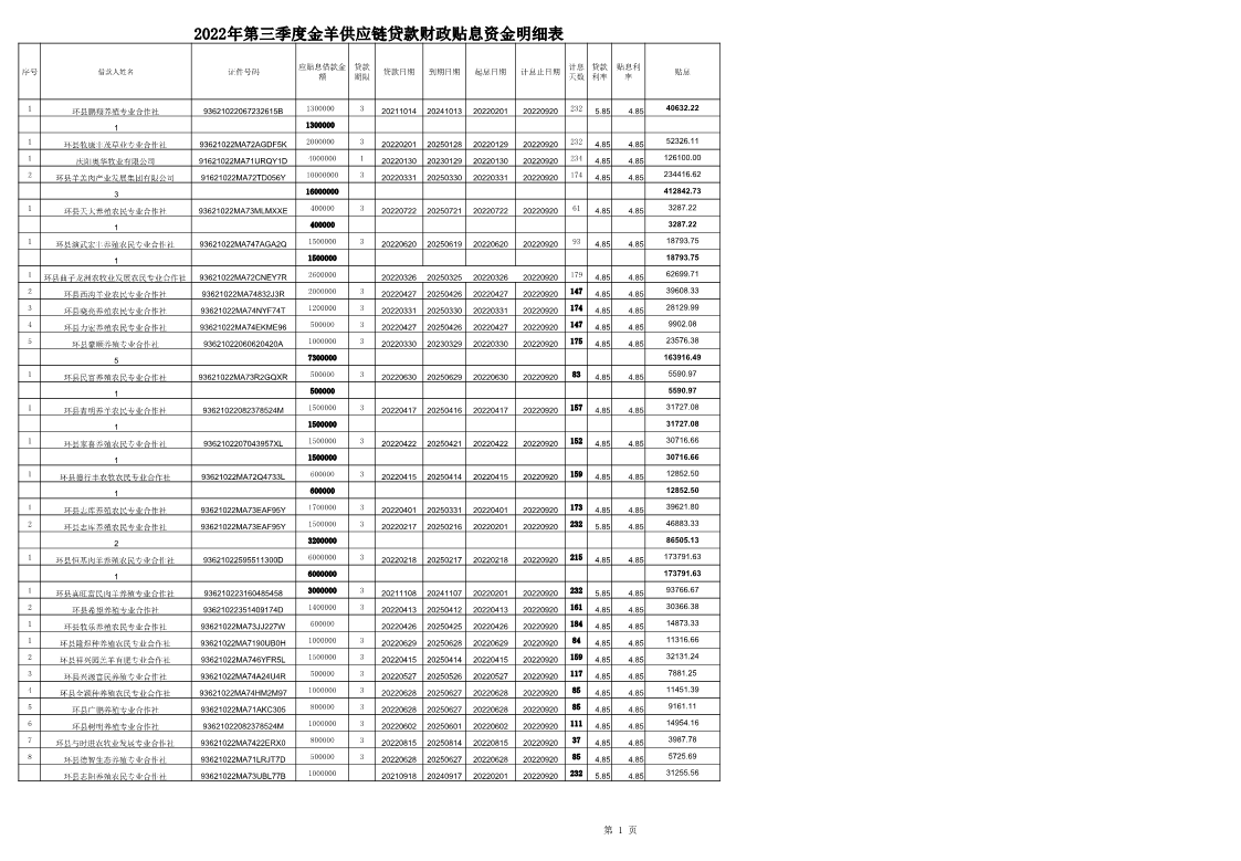 索引号: czj-2022-00567 发布机构: 生效日期: 2022-09-30 废止日期: 文 号: 所属主题: 扶贫资金公示 联社2022年第三季度金羊供应链贷款贴息明细 时间:2022-09-30 【字体:小 大】 扫一扫分享到朋友圈 【打印正文】 分享到: 【字体:小 大】