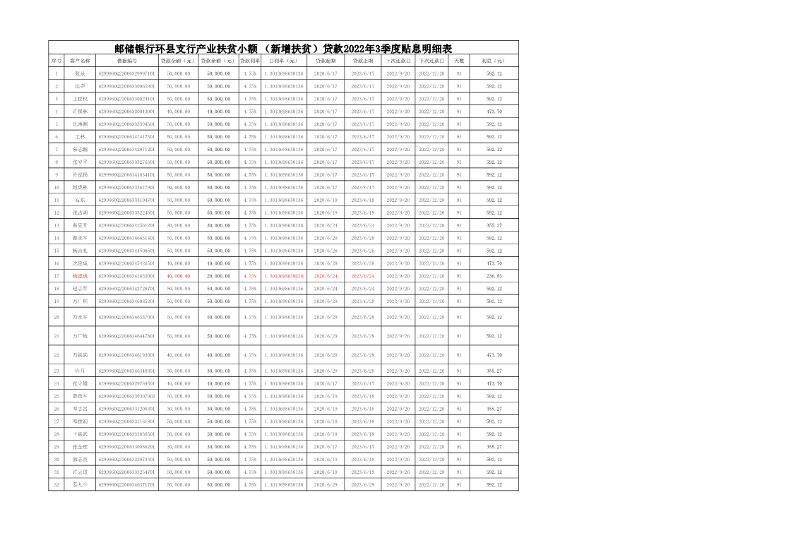 索引号: czj-2022-00569 发布机构: 生效日期: 2022-09-29 废止日期: 文 号: 所属主题: 扶贫资金公示 邮储银行2022年第3季度新增扶贫小额贷款贴息资金明细 时间:2022-09-30 【字体:小 大】 扫一扫分享到朋友圈 【打印正文】 分享到: 【字体:小 大】