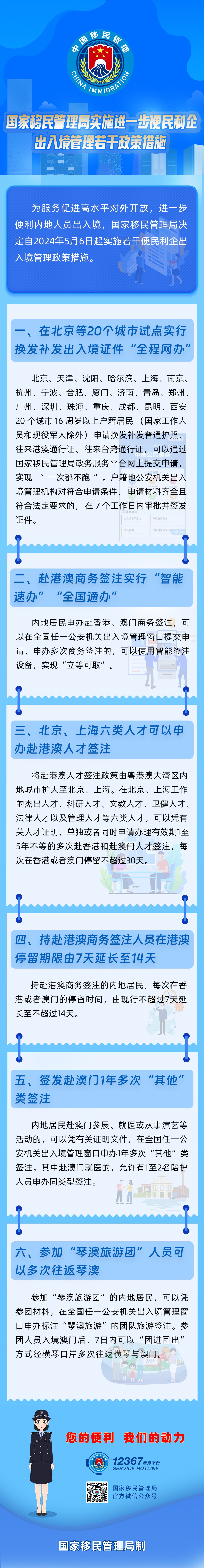 索引号: gaj-2025-00005 发布机构: 生效日期: 2025-08-26 废止日期: 文 号: 所属主题: 户籍管理 一图看懂!国家移民管理局实施进一步便民利企出入境管理若干政策措施 时间:2025-08-26 【字体:小 大】 扫一扫分享到朋友圈 【打印正文】 分享到: 【字体:小 大】