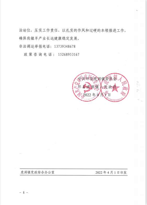 虎洞镇全面落实“双保”政策,“保稳”结合推进羊产业发展 发布时间:2022-04-07 00:12:32 【字体:小 大】 面对当前羊只市场价格波动的不利影响,为进一步提振养羊农户的积极性,虎洞镇镇村干部迅速行动,全面贯彻落实《全县肉羊保护价收购政策意见》,切实保障羊产业稳定发展,确保养羊群众稳定增收。一、镇村组干部全面参与,成立服务专班跟踪服务。为进一步落实好羊只收购工作,虎洞镇成立羊只收购“双保护价”服务专班,切实保障群众利益。 二、注重宣传引导,确保“双保”政策家喻户晓。通过召开肉羊保护价收购政策宣讲会议、入户宣传、悬挂横幅等方式,及时将“双保”政策推送千家万户。 三、多措并举收购,提振农户养羊信心。全镇3个育肥场和2个“331+”提升改造育肥场,通过上门收、定点收的方式,按照达标即收购的原则,全面开展保价收购工作。 智能标签: 虎洞镇 全面 落实 政策 结合 扫一扫分享到朋友圈 【打印正文】
