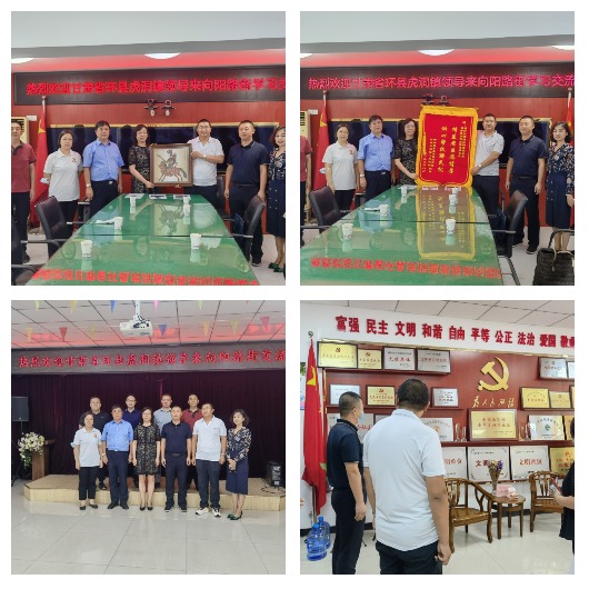 会前,在向阳路街环县虎洞镇向向阳路街敬赠了印有“情系老区恩情厚、倾心帮扶解民忧”字样的锦旗和环县皮影艺人手工雕刻的环县皮影;与会人员还参观了昔阳里社区功能服务室建设情况。
