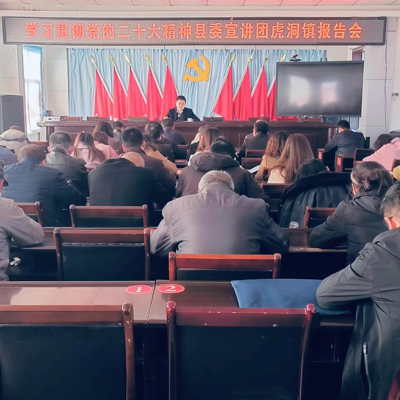 学习贯彻党的二十大精神县委宣讲团报告会11月24日下午在虎洞镇政府举行。县委宣讲团成员、副县长刘博作报告,镇党委书记梁海涛主持报告会,镇政府全体干部职工、部分村干部、驻村工作队队员共计83人参加会议。