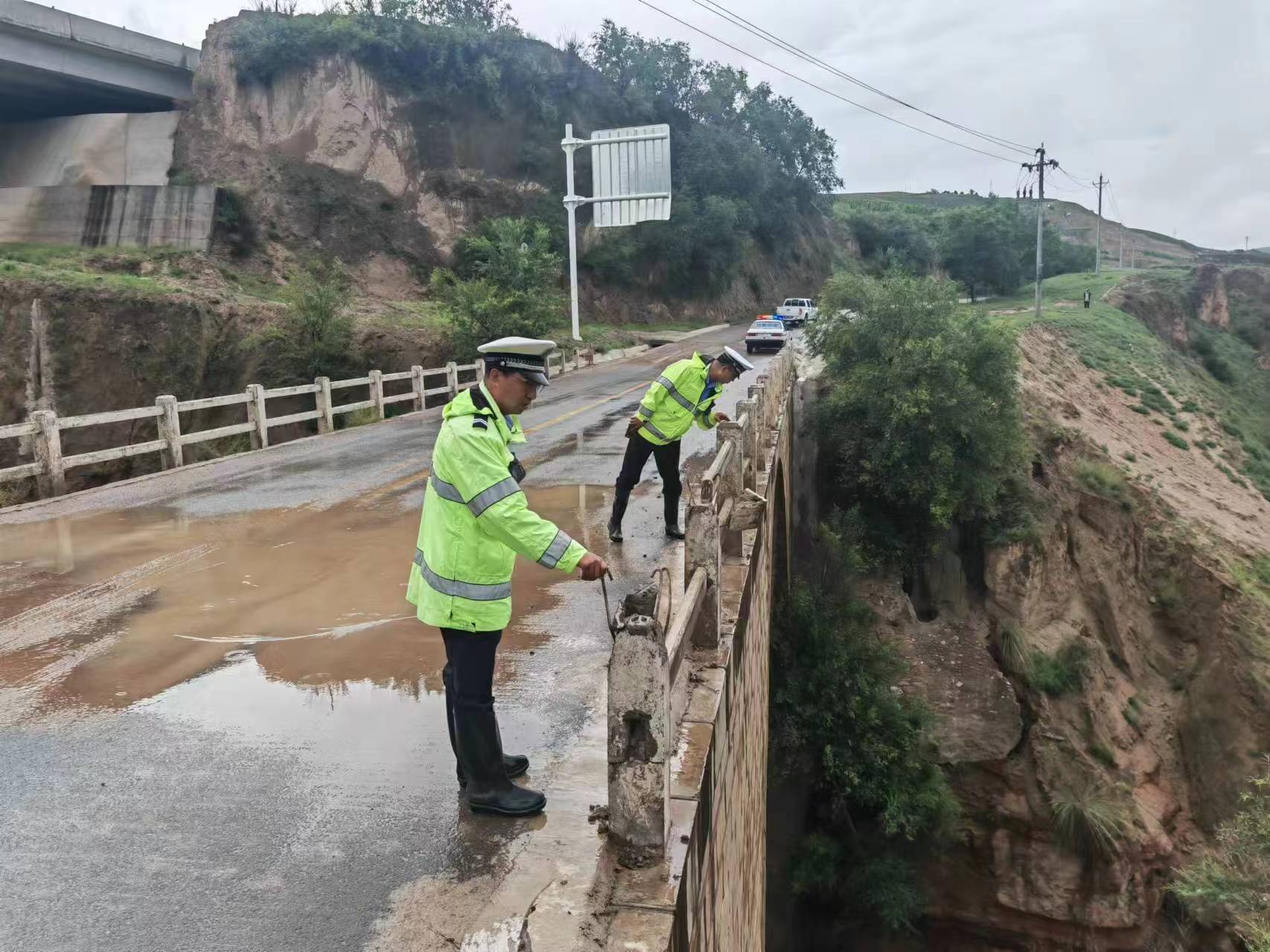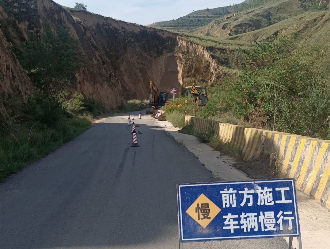 强降雨结束后,虎洞镇组织镇村干部迅速对辖区13条村组油路7条砂砾路及12座淤地坝开展全面摸排,共摸排受损路段26处,边沟776米,水毁路面913㎡,在塌方路段和水毁严重路段设置警示标识,防止道路交通安全事故发生。