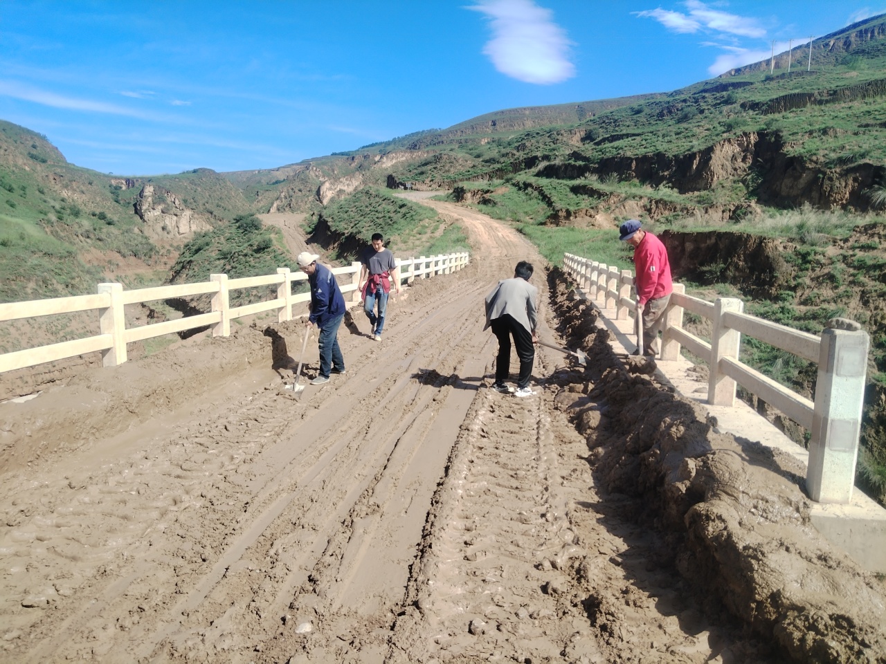 镇村干部及党员群众积极开展道路抢修工作,共调动大型机械10余台,对道路淤泥、杂物等进行清理,并对损坏路段进行抢修,消除了风险隐患,所有受损路段已全部畅通。同时进村入户,对群众住房安全进行排查,帮助受灾群众清理院落淤泥、疏通排水渠,确保风险隐患排查整治不存死角、不留空白,最大限度降低强降雨对群众生产生活造成的不利影响。