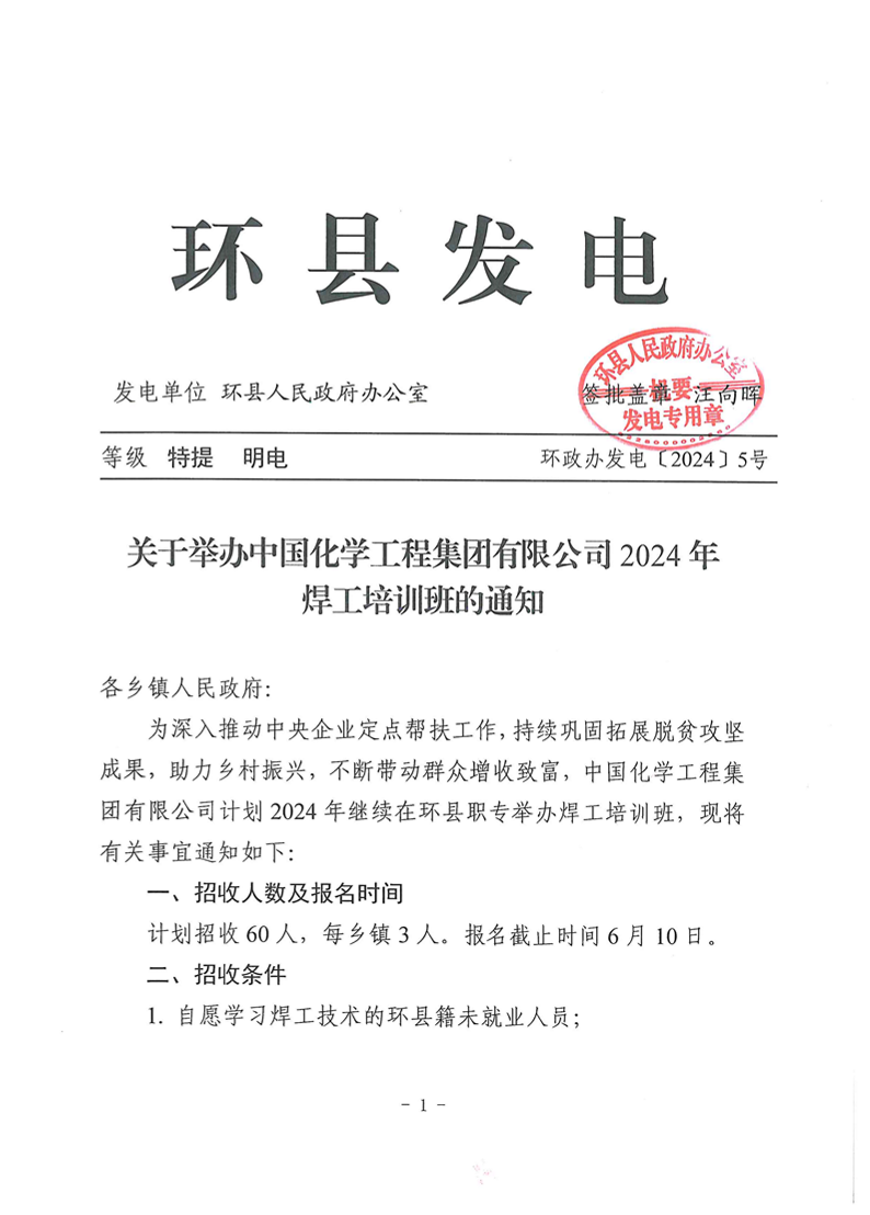 关于举办中国化学工程集团有限公司2024年焊工培训班的通知