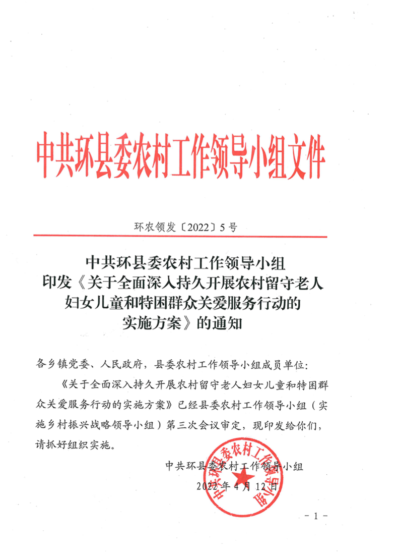 关于全面深入持久开展农村留守老人妇女儿童和特困群众关爱服务行动的实施方案