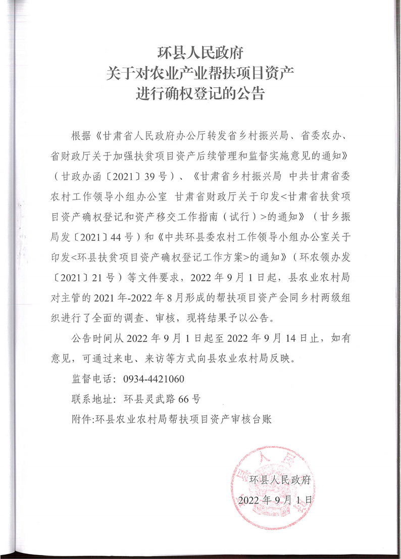 关于对农业产业帮扶项目资产进行确权登记的公告