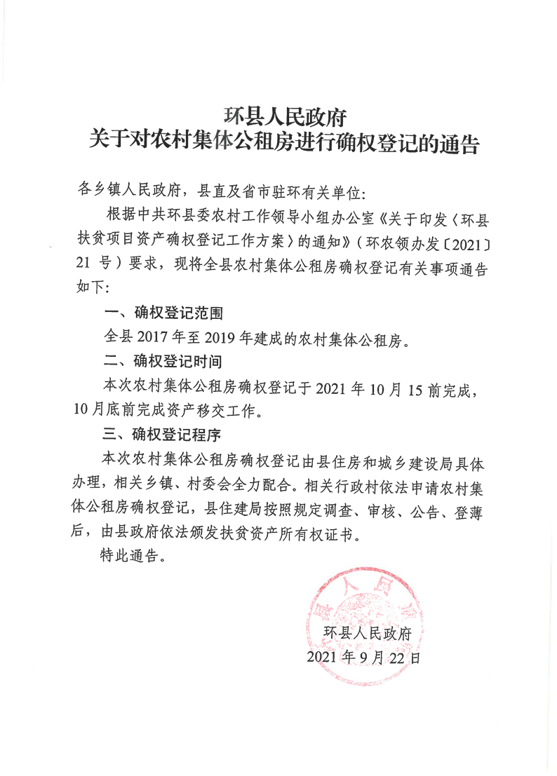 关于对农村集体公租房进行确权登记的通告 发布时间:2021-09-22 09:30:44 【字体:小 大】 附件:2017-2019年农村集体公租房名单(1).xlsx 扫一扫分享到朋友圈 【打印正文】