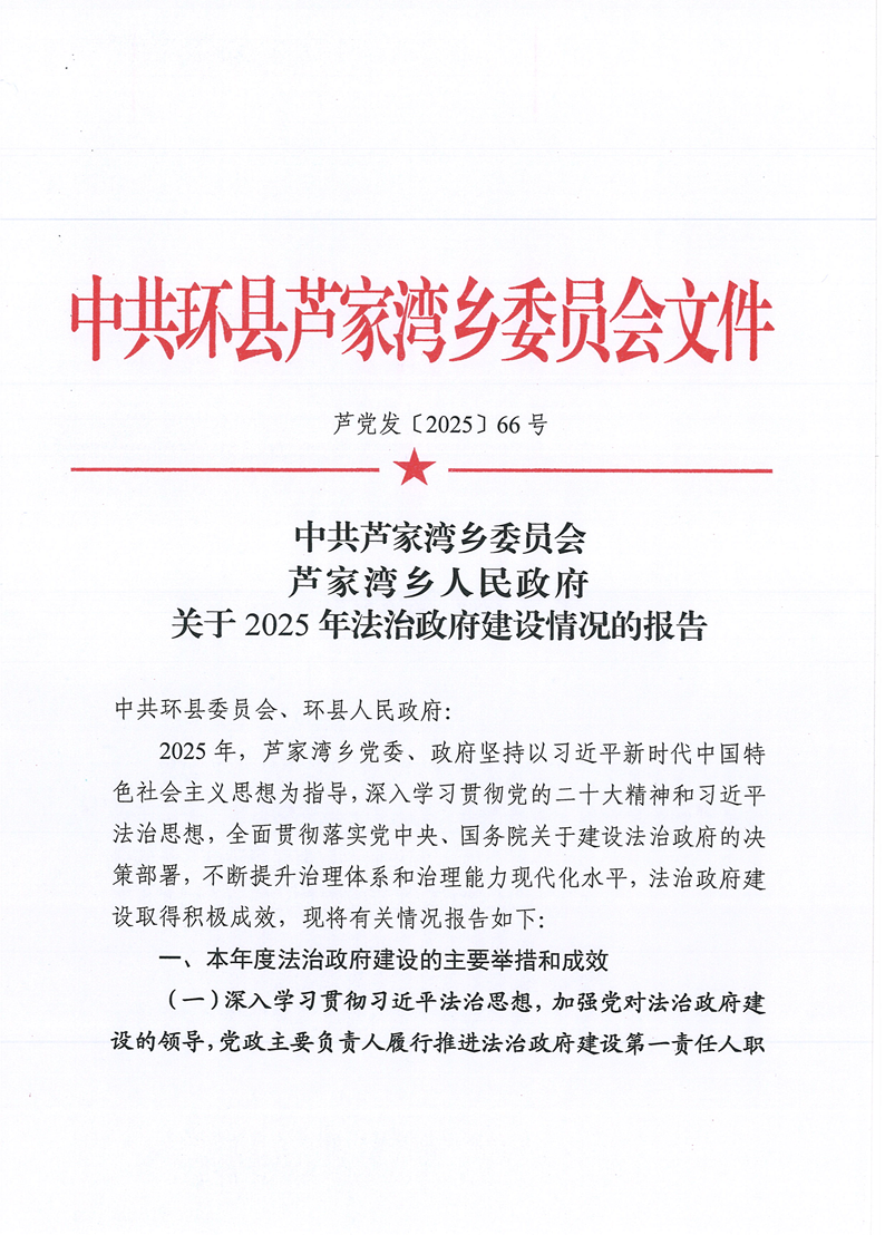 索引号: ljwx-2026-00004 发布机构: 生效日期: 2026-03-31 废止日期: 文 号: 所属主题: 法治政府建设年度报告 芦家湾乡关于2025年法治政府建设情况的报告 发布时间:2026-03-31 【字体:小 大】 扫一扫在手机打开网页 【打印正文】 分享到: 【字体:小 大】