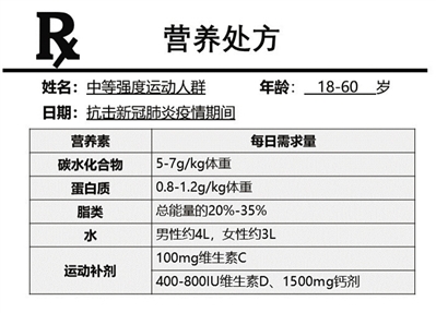 保持膳食均衡,每天饮食中50%能量来自碳水化合物,不可不进食脂类,确保充足的蛋白质摄入,优质蛋白占总比例的三分之一,多食新鲜果蔬等。疫情可能造成物资匮乏、日照不充足等情况,必要时可补充饮食中无法满足的参与抗氧化作用的维生素C以及在骨代谢方面发挥重要作用的维生素D与钙剂。